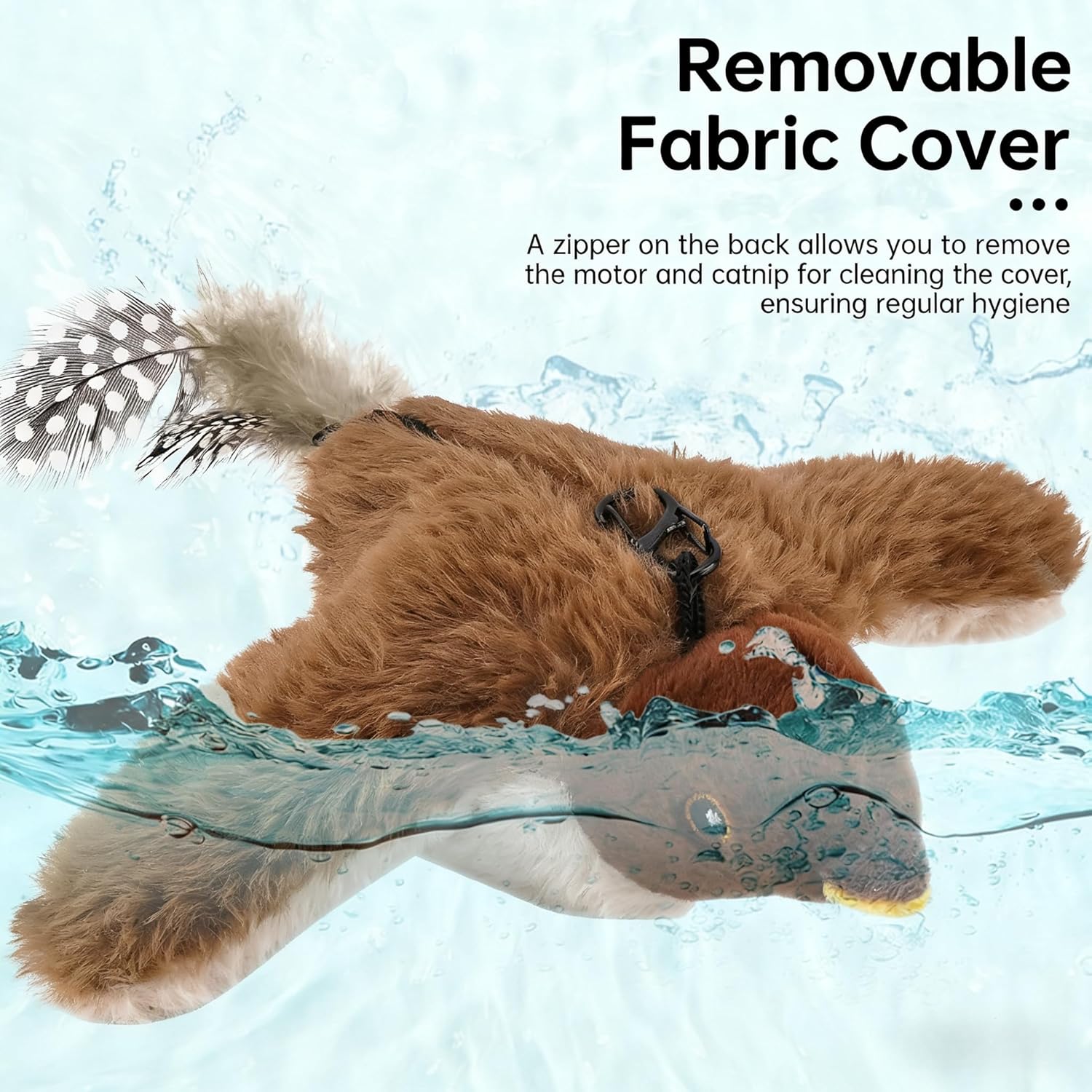 - 5. Detachable & Washable Design with Accessories Features a detachable plush cover for easy cleaning. Includes hook and hanging rope to offer more play methods—hang it, drag it, or let it move freely to create unpredictable flight-style motion.